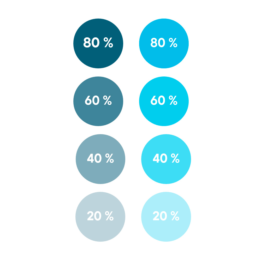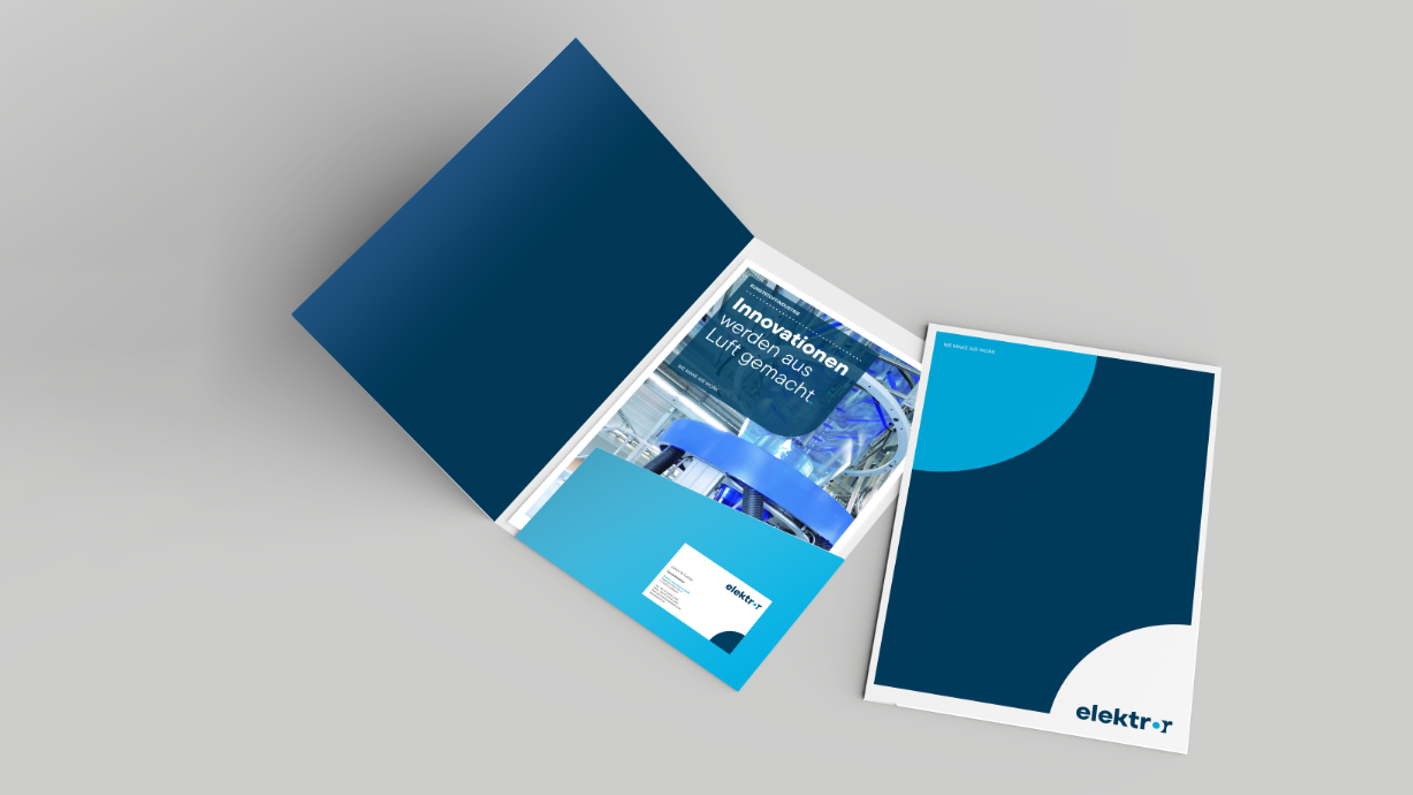 Zwei Blautöne – Dunkelblau und Hellblau – dienen als Kontrastmittel und vermitteln Seriösität sowie Vertrauen in unsere Kompetenz als Technologieunternehmen. Sie symbolisieren die beiden Extreme, die Luft annehmen kann: Dunkelblau steht für Hochdruck, Hellblau für Niederdruck