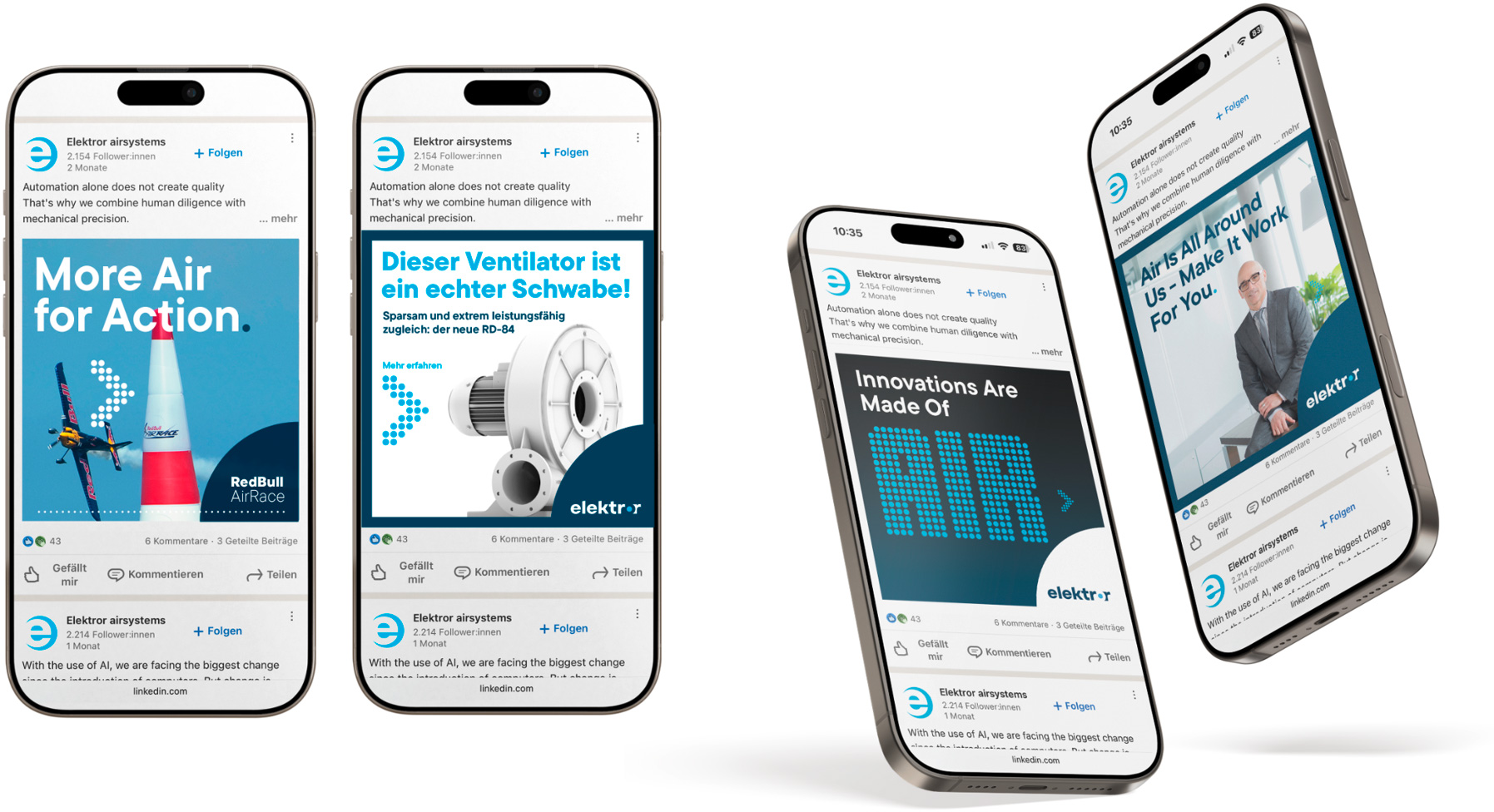 Luft steht im Zentrum unseres Schaffens, denn wir machen Luft als Werkzeug für industrielle Prozesse nutzbar. Mit unserem neuen Logo haben wir die Luft nun auch visuell verankert. Das Luftteilchen zieht sich zudem durch das gesamte Corporate Design.